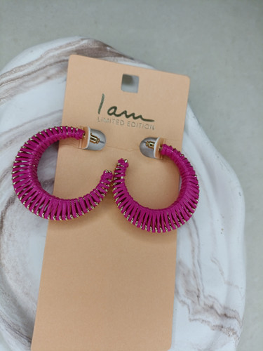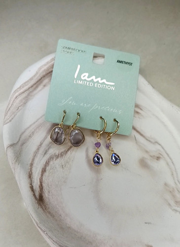 گوشواره حلقه ای طلایی با آویز سنگ های قیمتی i am