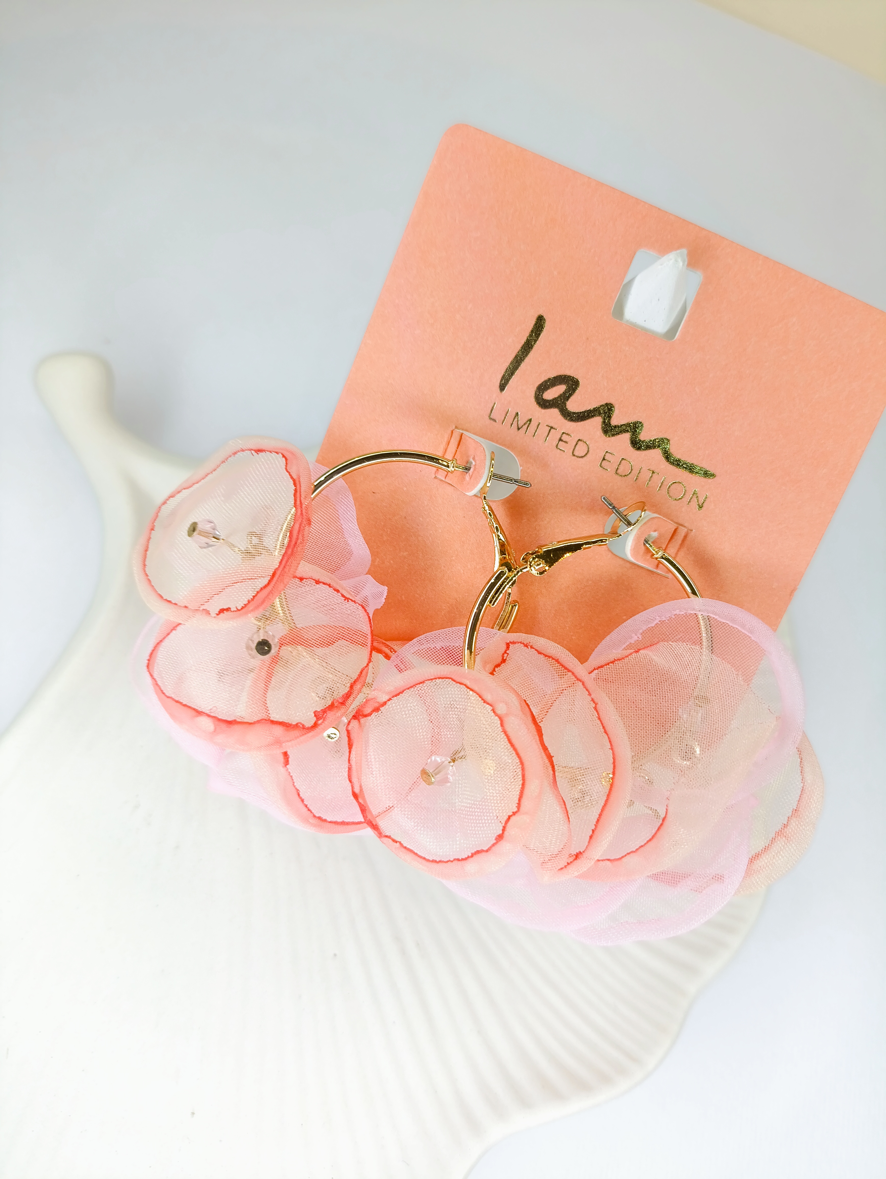 💖 گوشواره حلقهای با گلهای پارچهای لایهلایه
