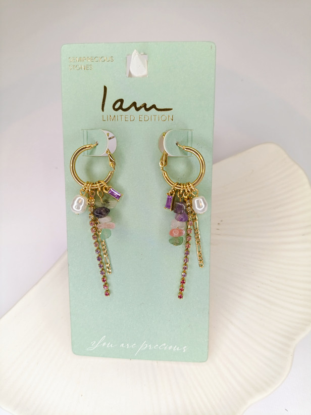 گوشواره حلقه ای طلایی با آویز سنگ های قیمتی i am